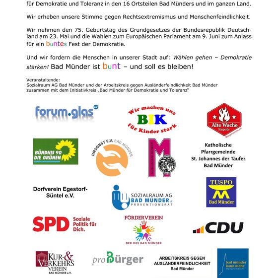 Es gab auch in Bad Münder und Umgebung Übergriffe auf ausländische Personen und einen Angriff auf ein Wohnhaus. Spontan bildete sich ein Unterstützerkreis von Personen, um weiteren Schaden von den Flüchtlingen und der Stadt abzuwenden. Im Laufe der Weiterarbeit entwickelte sich ein regelmäßiger Gesprächskreis aus Bürgerinnen und Hauptamtlichen, die Interesse an Integrationsthemen in Bad Münder hatten. Gewerkschaften, Kirchen und Parteien haben die Arbeit unterstützt.