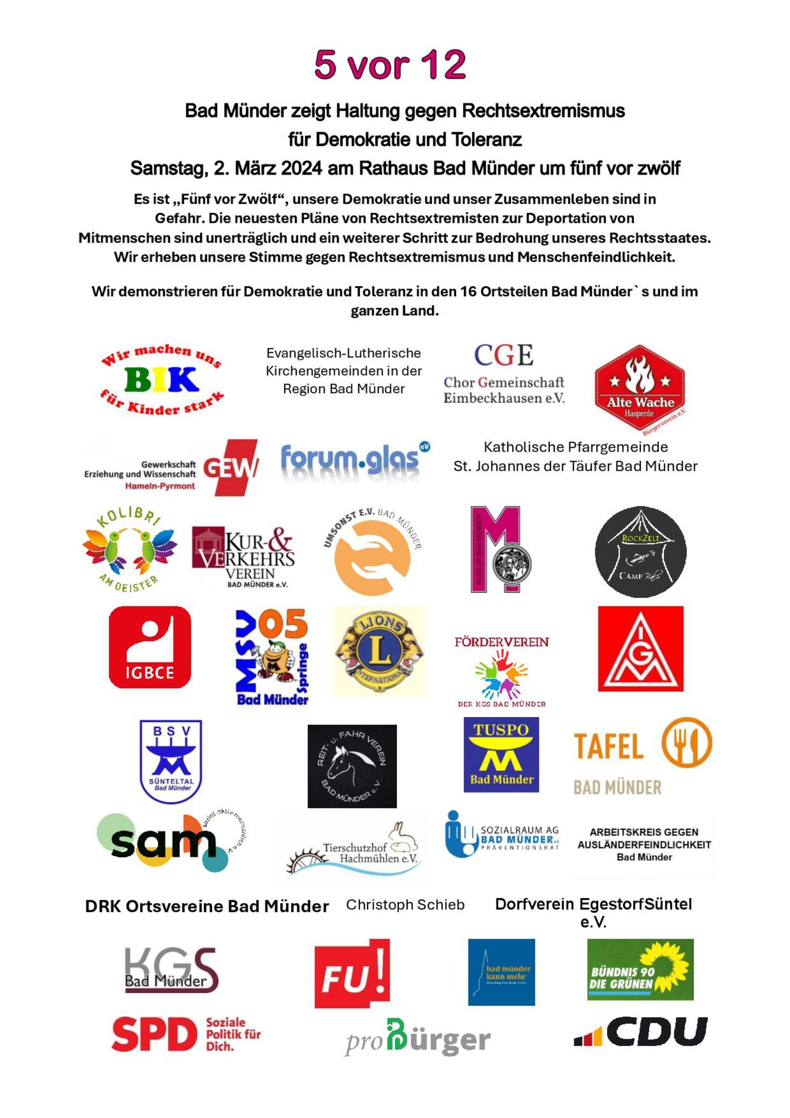 Bad Münder zeigt HALTUNG gegen Rechtsextremismus | Samstag 02.03.2024 | 5 vor 12 | Marktstrasse Bad Münder