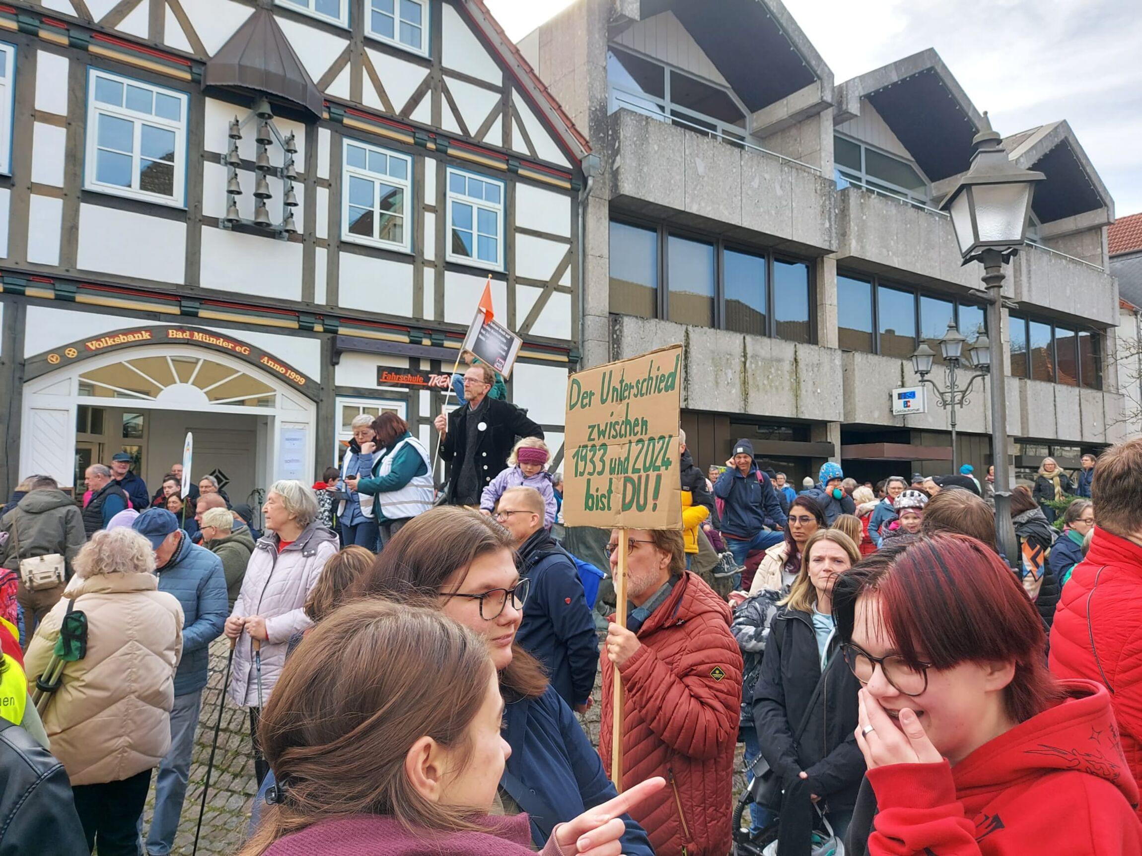 ca 800 Menschen haben am Samstag 2. März 2024 in Bad Münder für Demokratie und Toleranz und gegen Rechtsextremismus und Menschenfeindlichkeit demonstriert.