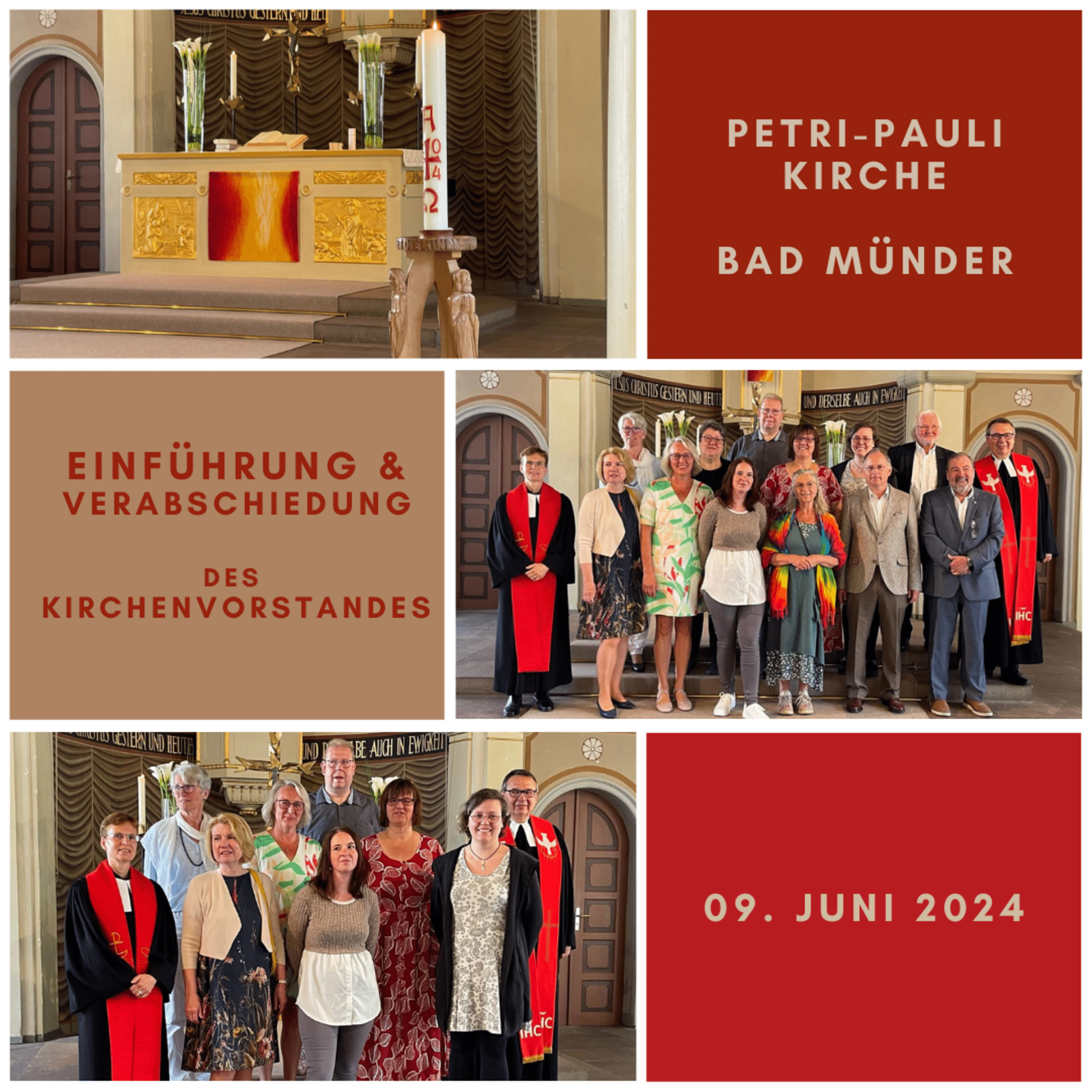 In einem feierlichen Gottesdienst in der Petri-Pauli Kirche Bad Münder, wurde am Sonntag der neue Kirchenvorstand von Pastor Adler & Pastorin Daentzer eingeführt. Dieser Besteht aus Anja Langkopf, Bettina Katz, Gudrun Müller, Sabine Priesett, die schon lange Jahre Erfahrung mitbringen. Hinzu kommt neu Kathleen Haack und Lena Kawalek. Am 4. August wird noch Kerstin Henke in ihr Amt eingeführt und vervollständigt damit den neuen Kirchenvorstand der Petri-Pauli-Kirchengemeinde.