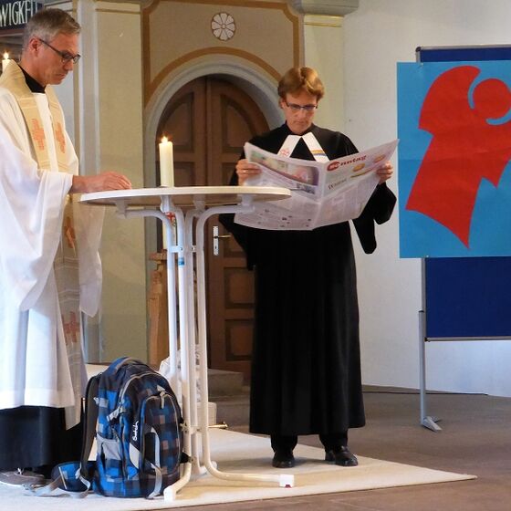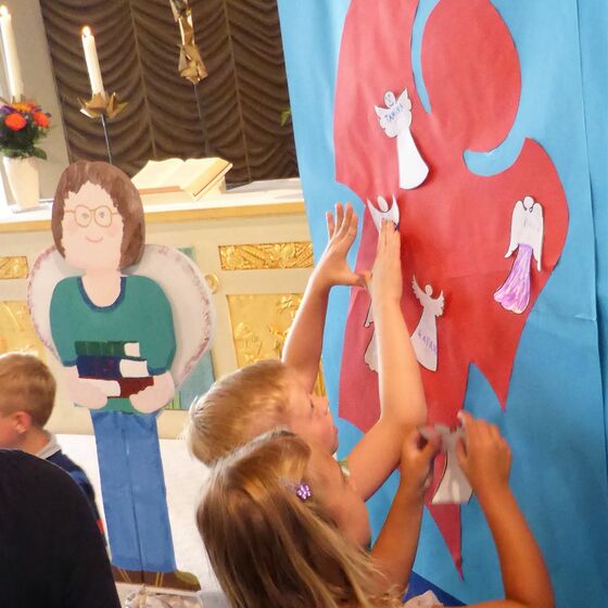 Hier einige Eindrücke und Impressionen vom Gottesdienst zum Schulanfang „Jeder Mensch braucht einen Engel“