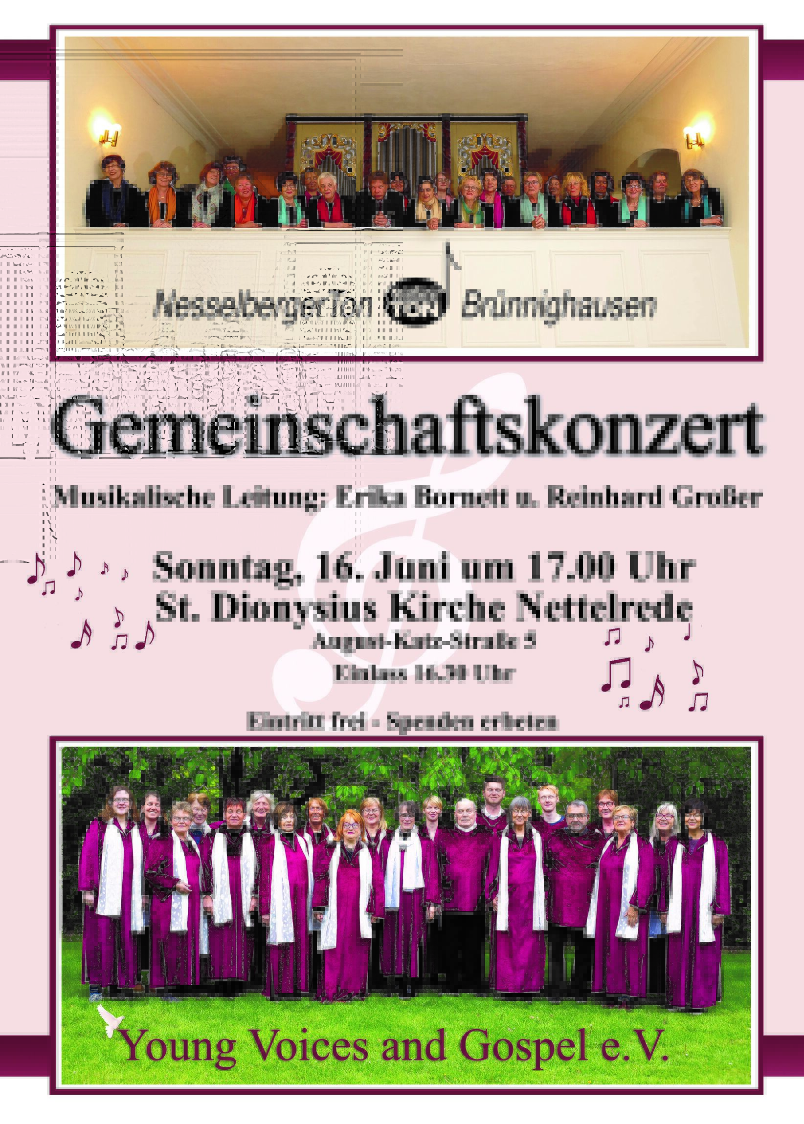 zu einem "Gemeinschaftskonzert" am Sonntag 16. Juni um 17:00 Uhr in die St. Dionysios Kirche Nettelrede