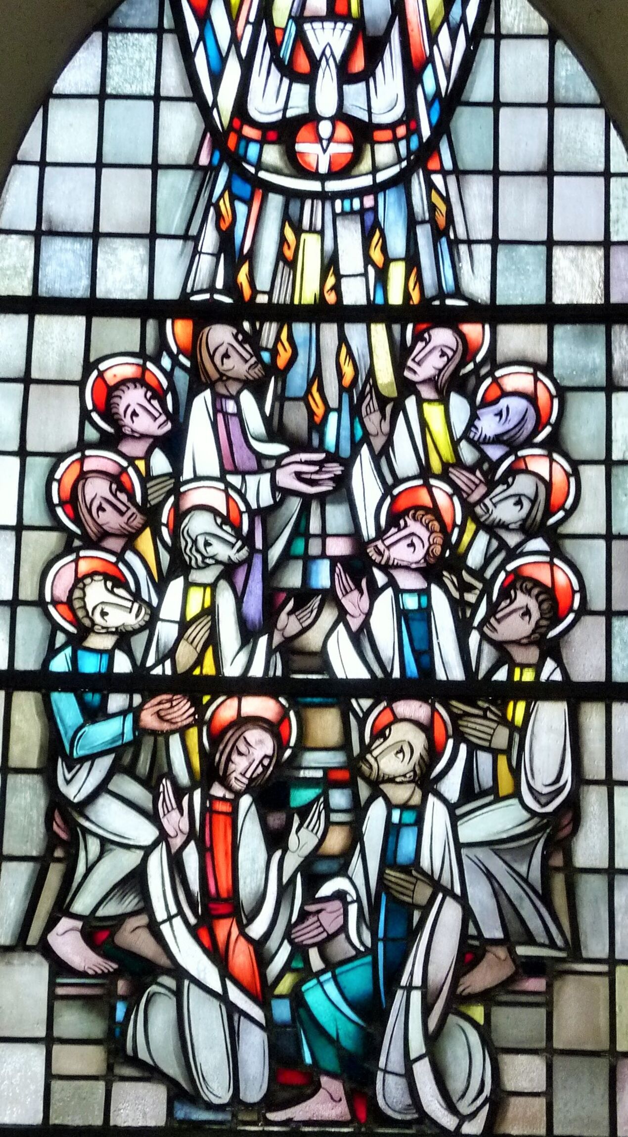 Das Fensterbild, „die Ausschüttung des heiligem Geistes“ von dem Braunschweiger Glasmaler Hans Matschinski.